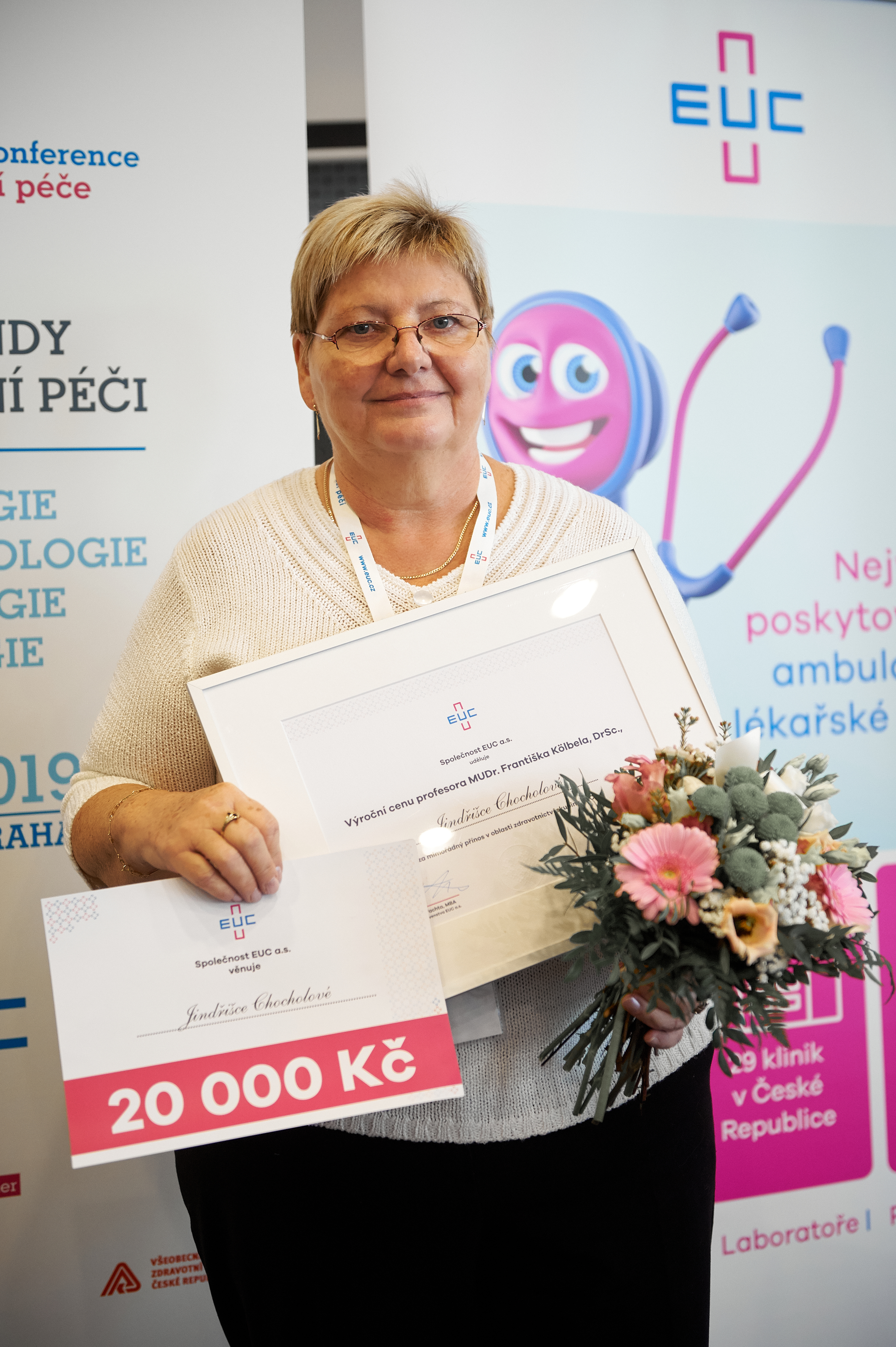 V rámci konference byly již tradičně předány výroční ceny profesora MUDr. Františka Kölbela ZA MIMOŘÁDNÝ PŘÍNOS PRO ZDRAVOTNICTVÍ EUC. K tomuto ocenění jsou nominováni zdravotníci nejen pro jejich přínos v oblasti medicíny, ale i v ostatních oblastech profesního života, jako je kolegialita, nasazení či nadšení v práci a inovace. V kategorii LÉKAŘ získal toto ocenění MUDr. Petr Podroužek, CSc., odborný ředitel EUC Laboratoří, a v kategorii NELÉKAŘSKÝ PERSONÁL byla zvolena Jindřiška Chocholová z EUC Kliniky Ústí nad Labem.