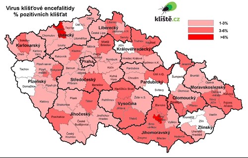 Klíšťová encefalitida – mapa, Zdroj: kliste.cz